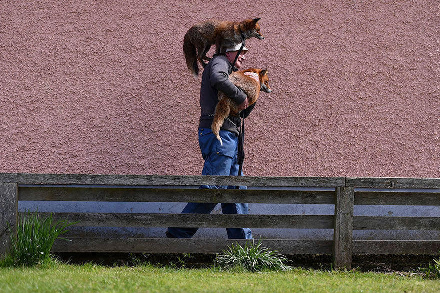 据《爱尔兰观察报》报道,来自爱尔兰基尔肯尼的帕特思-吉本斯(Patsy Gibbons)有三个狐狸伙伴。三只狐狸在幼年的时候就受了伤被丢弃在野外,吉本斯出于恻隐之心收留了它们,每日悉心照顾,帮助它们恢复了健康。